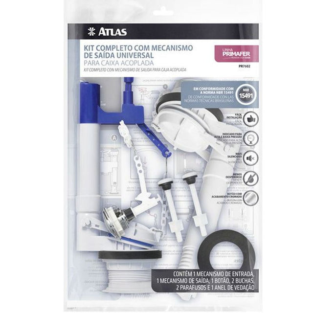 Este conjunto completo da Atlas oferece uma solução universal e eficiente para o sistema de descarga de caixas acopladas, garantindo praticidade e ótimo desempenho.
