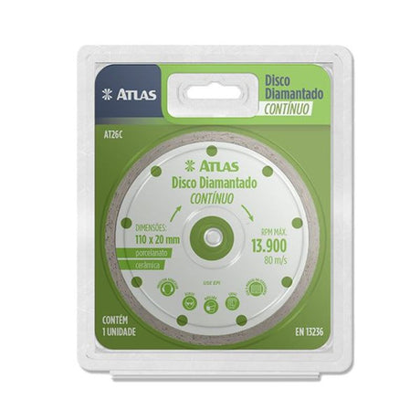 Preço normal R$ 15,50Preço unitário /IndisponívelDisco Diamantado Atlas Contínuo (Liso) 4 3/8 Polegadas 110x20mm