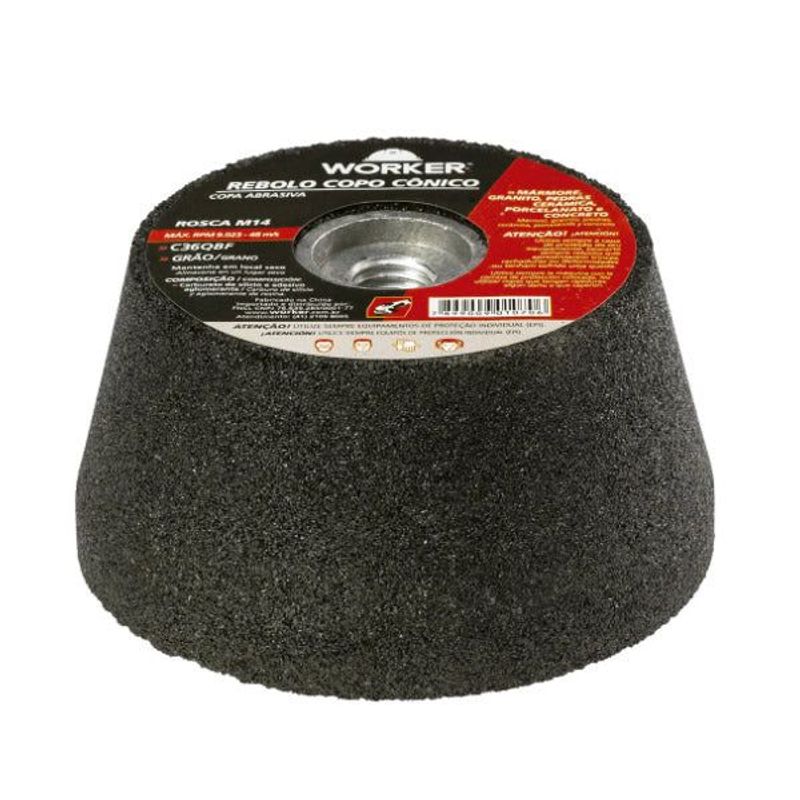 Obtenha desbaste e acabamento de alta qualidade com o Rebolo Copo Cônico WORKER, ideal para diversas aplicações.