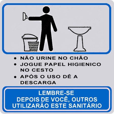 Preço de venda R$ 12,00 Preço normal R$ 16,90Preço unitário /IndisponívelPlaca de Alumínio 15x15cm, Procedimento Sanitário Masculino