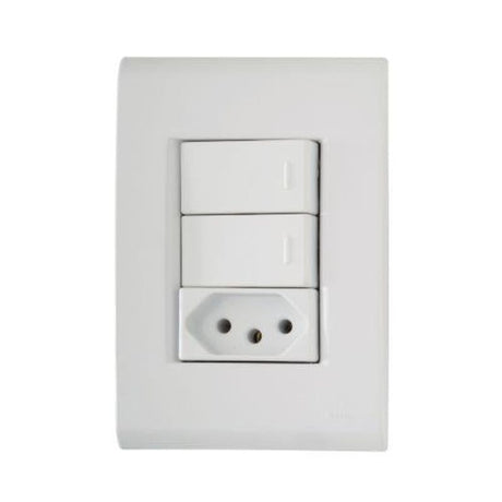 Preço normal R$ 49,90Preço unitário /IndisponívelConjunto Tramontina Liz com 2 Interruptores Simples e 1 Tomada 2P+T 10A