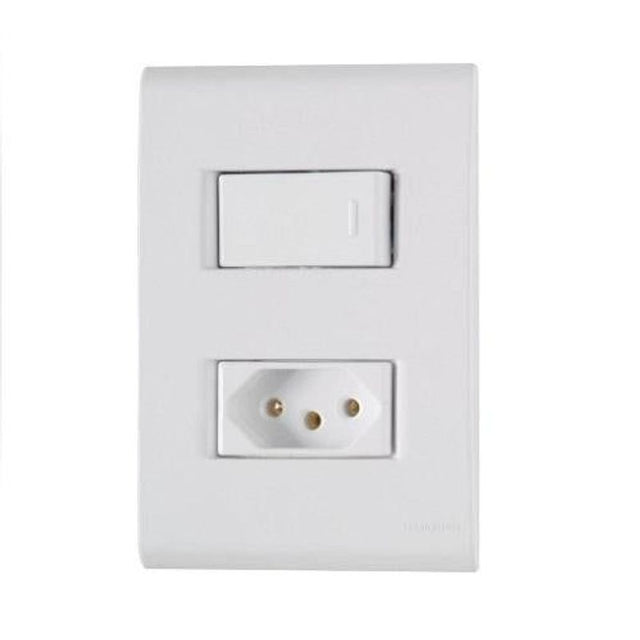 Utilize o interruptor simples para controlar a iluminação de um ambiente e a tomada 2P+T de 10A para conectar equipamentos compatíveis com a voltagem de 250V e corrente de 10A.