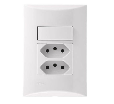 Preço normal R$ 26,90Preço unitário /IndisponívelConjunto Iriel Brava com 1 Interruptor Simples e 1 Tomada 2P+T 10A NBR 14136