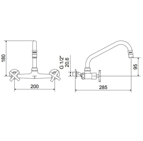 Misturador Meber Cozinha Parede 3005 Ômega c28 Cromado BA AA